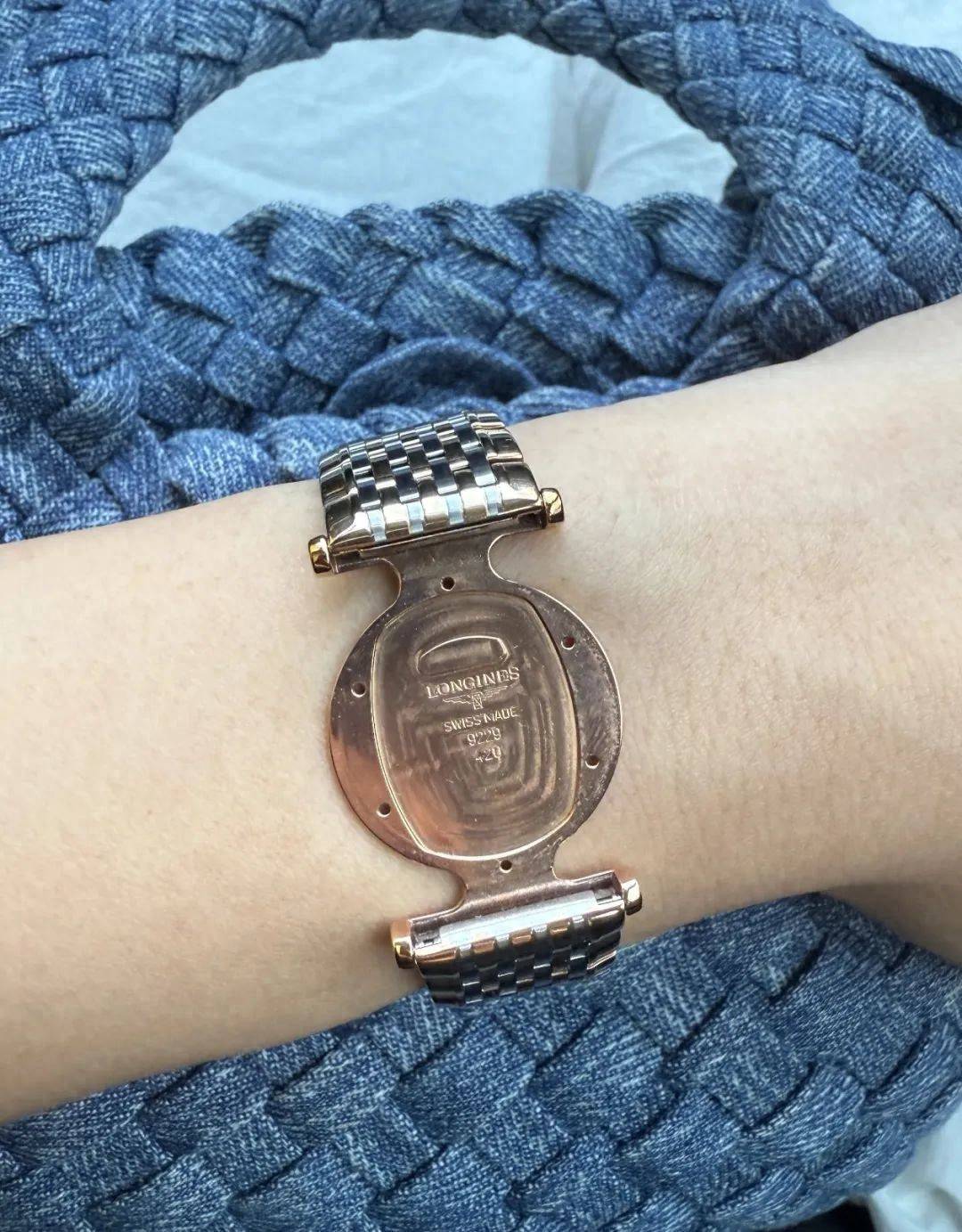 在该网友贴出的图片中可见,该金属腕表的表盘部分已不见踪影,表带上固定表盘的部位有浪琴的钢印LOGO。